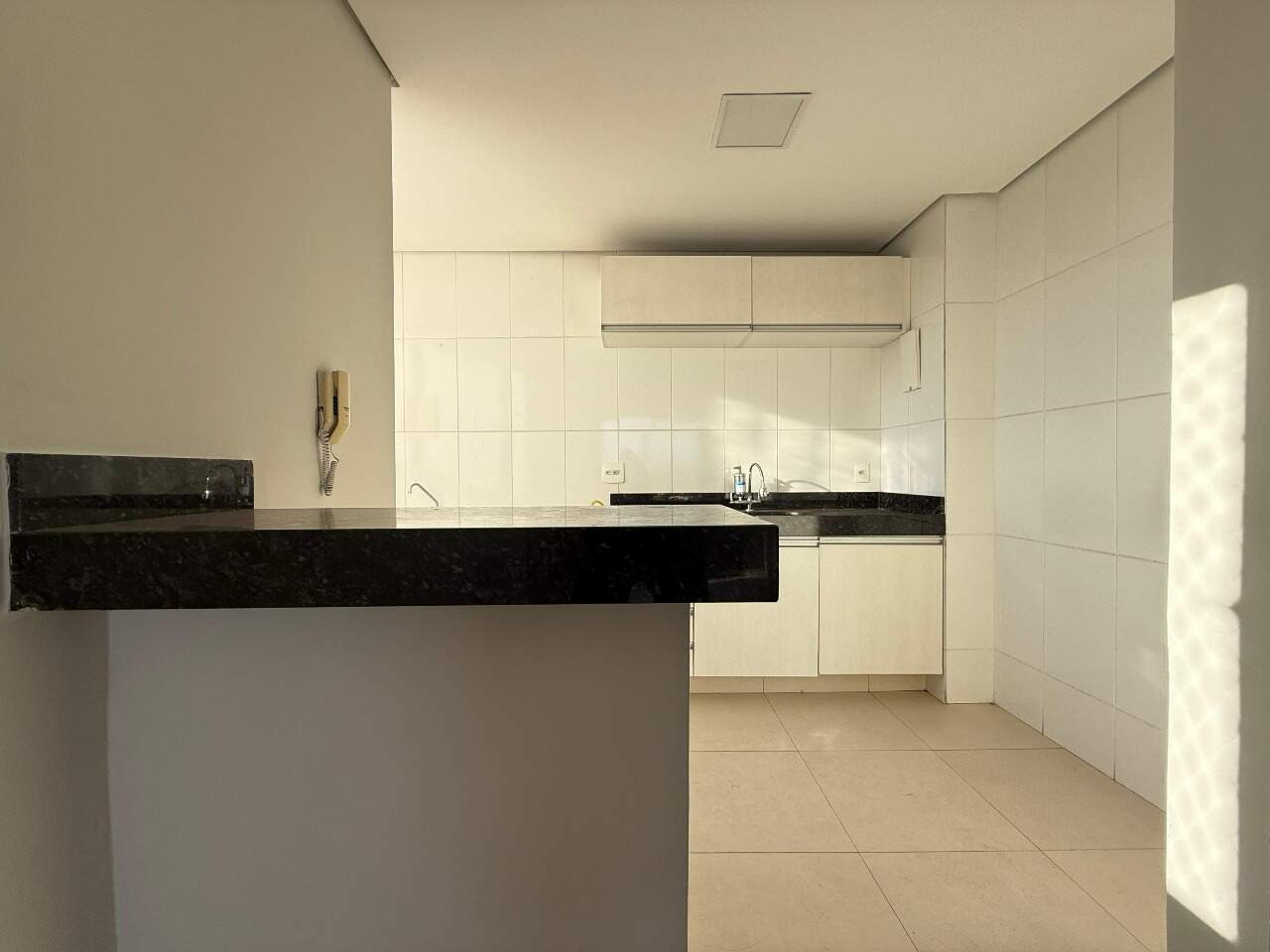 • Cozinha americana com armários, integrada à área de lavanderia;