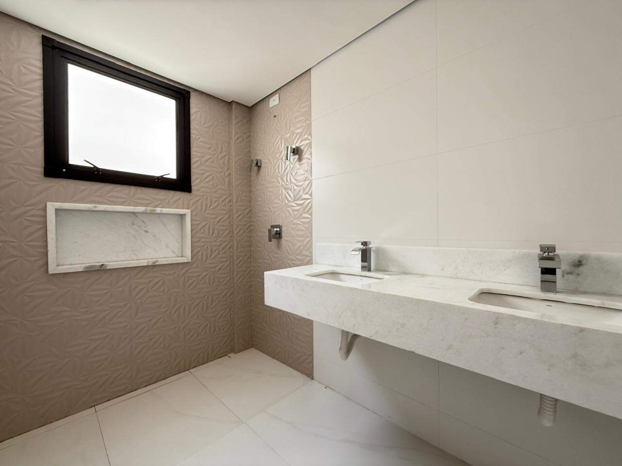 • Suíte Master com banheiro diferenciado: duas cubas, dois chuveiros e nicho espaçoso;