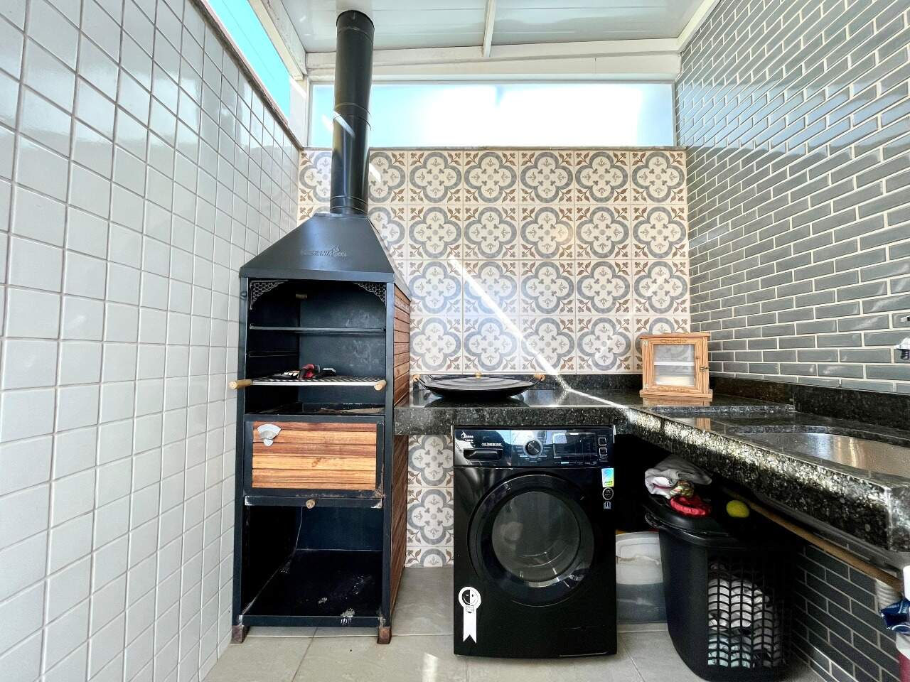 Área externa com ótimo espaço, telhado termo acústico parcialmente fechado proporcionando mais privacidade, churrasqueira e área de serviço com bancada em granito