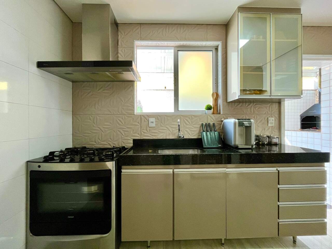Cozinha conceito aberto com bancada em granito e armários impecáveis, totalmente planejado.