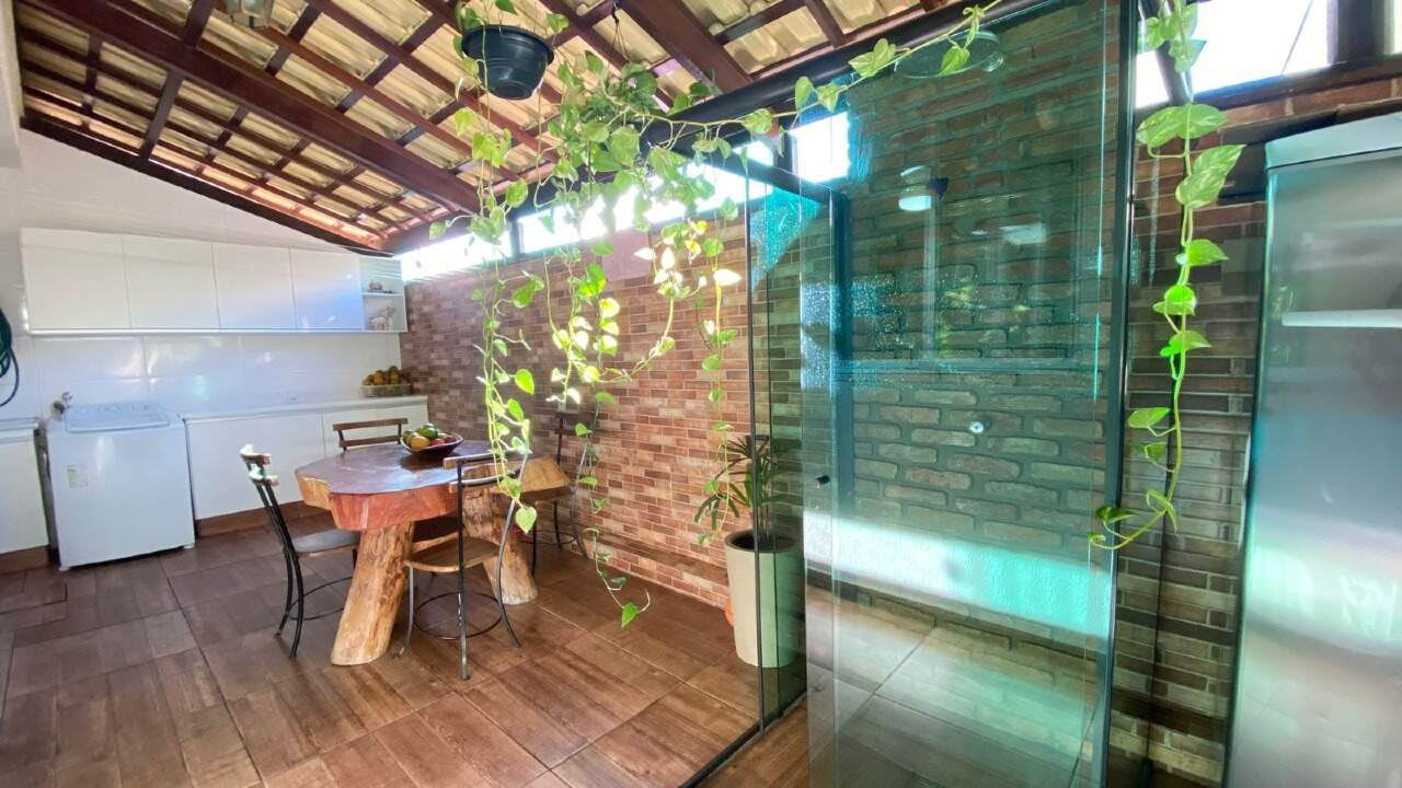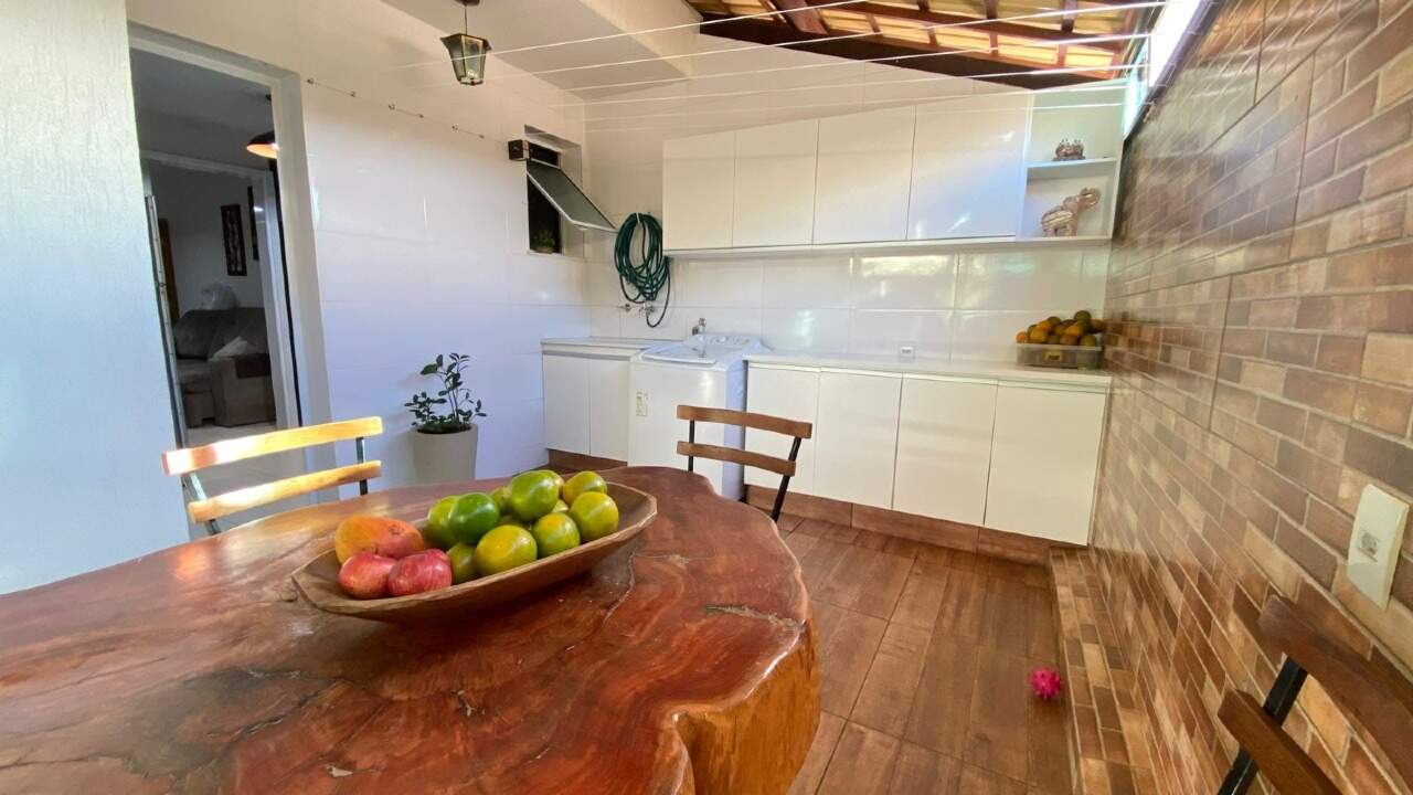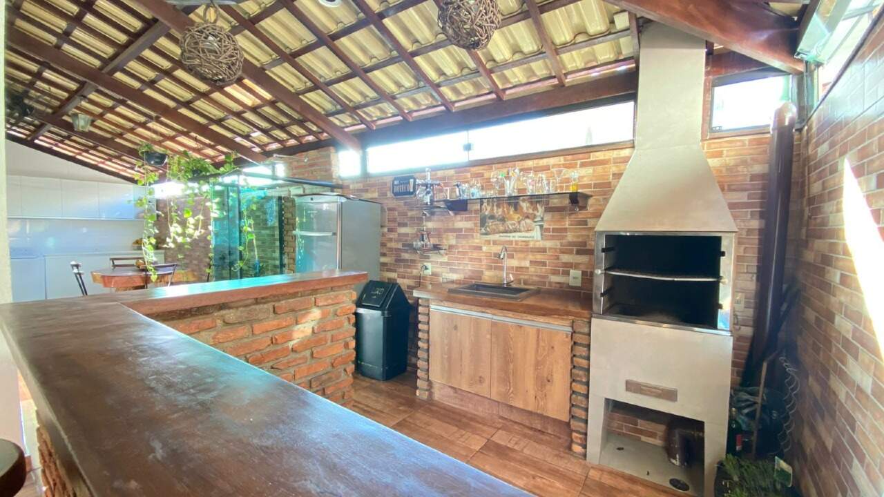 • Área privativa totalmente revestida, com telhado colonial novo, espaço gourmet com bancada em granito, churrasqueira e ducha
