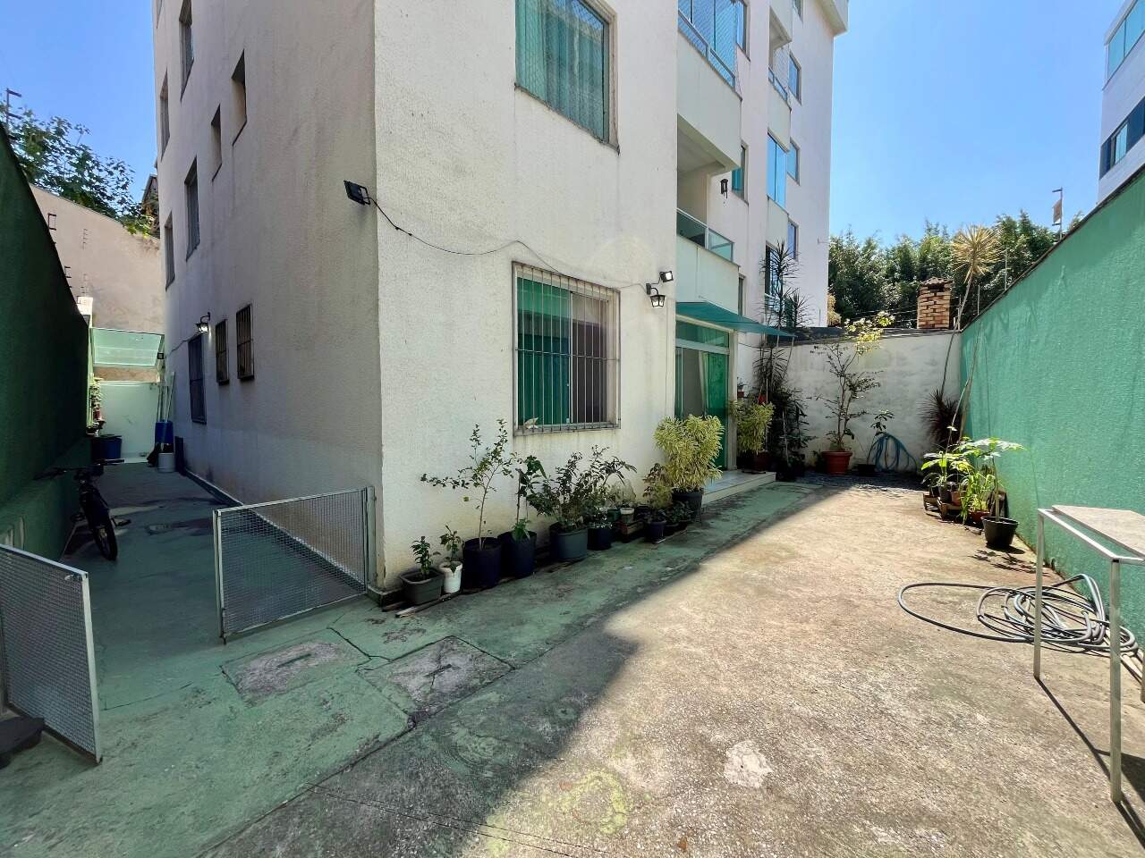 - área externa em formato de U, contorna o imóvel, parcialmente coberta,
