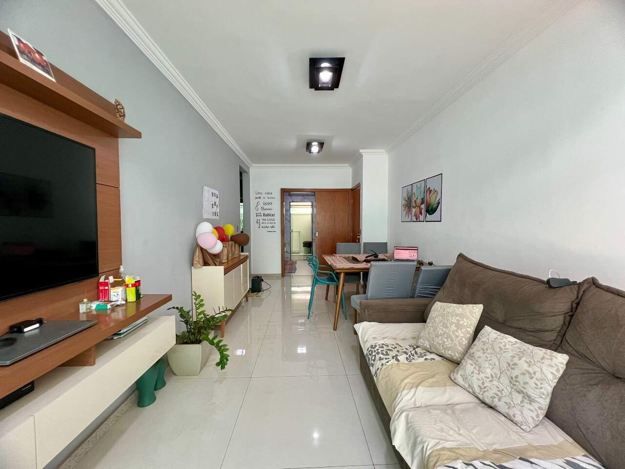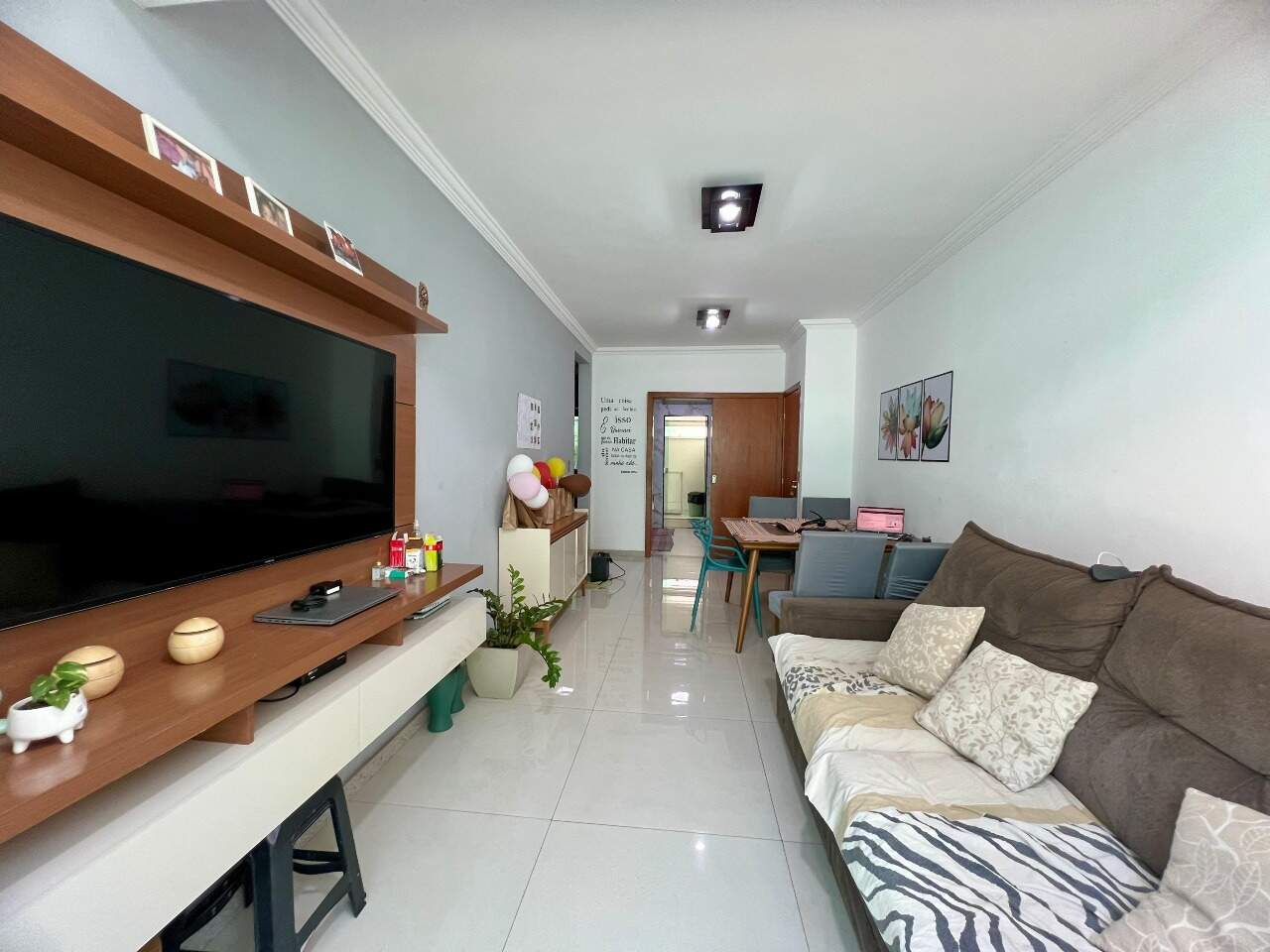 - Sala ampla para dois ambientes com piso em porcelanato;