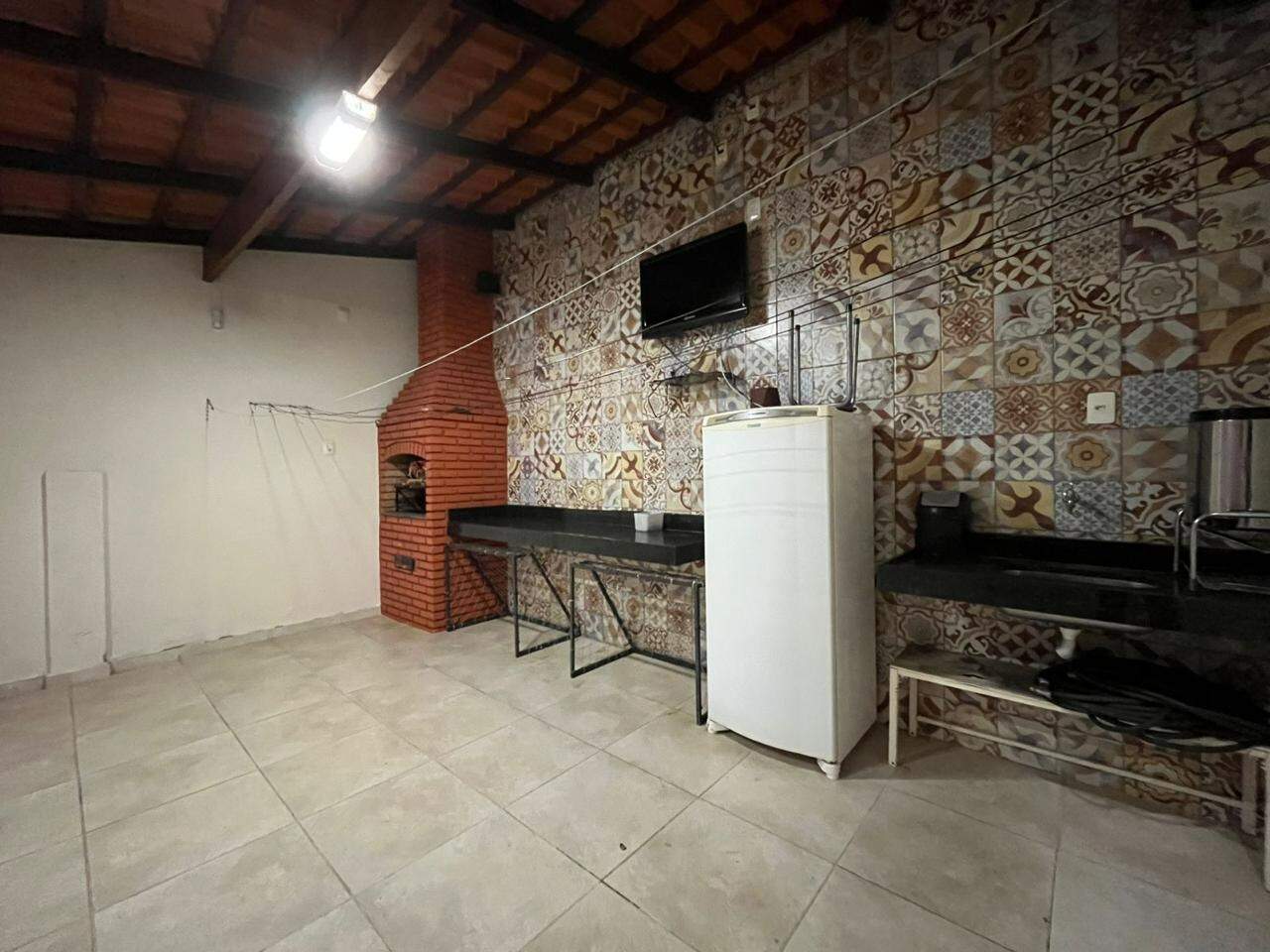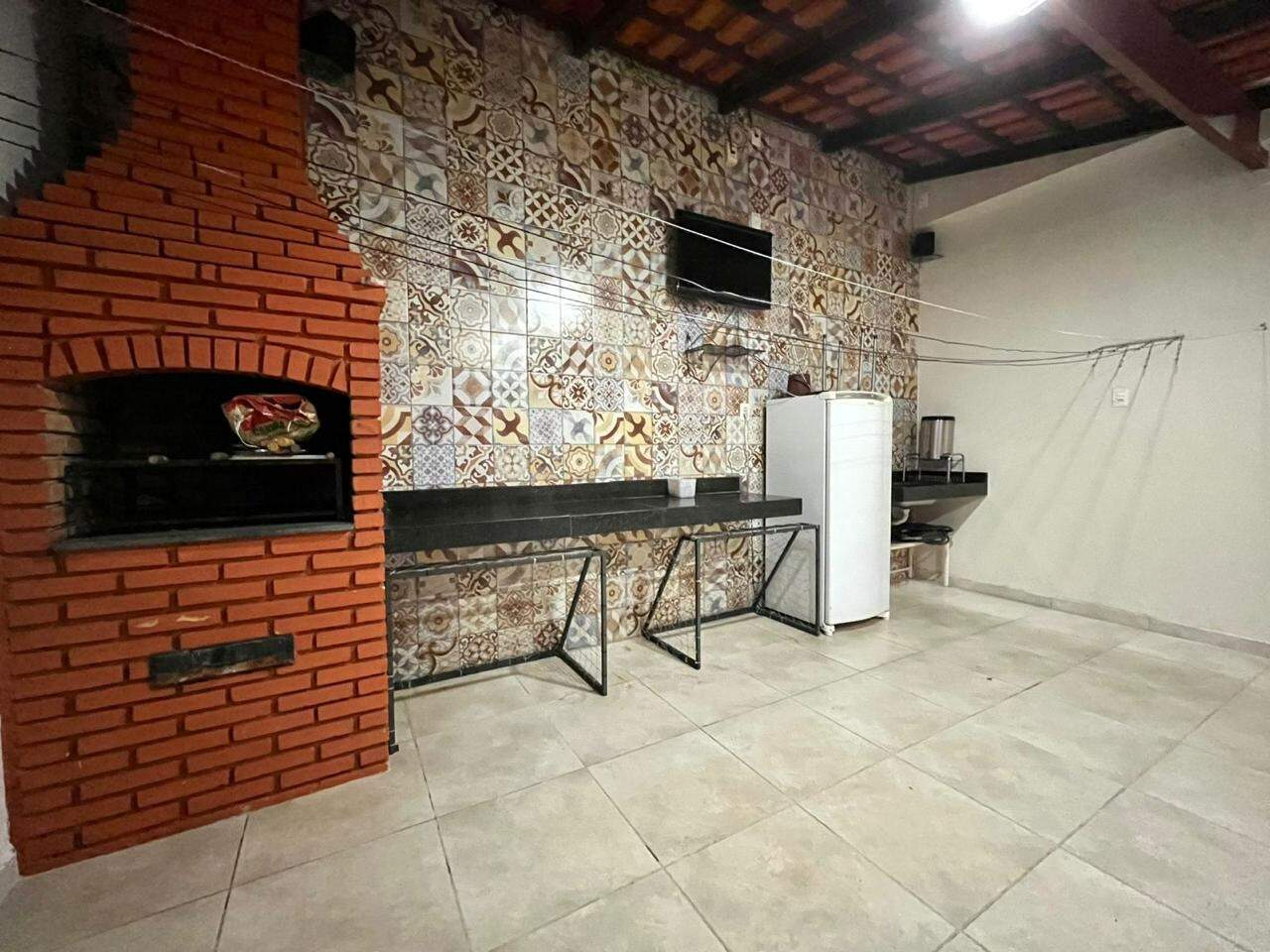 Área externa com espaço gourmet com churrasqueira, área livre descoberta,