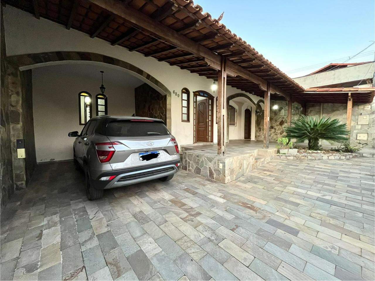 Casa plana, com garagem para 3 carros.