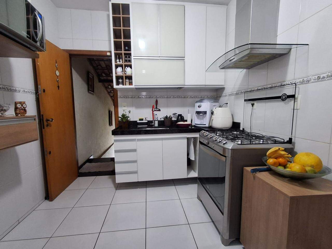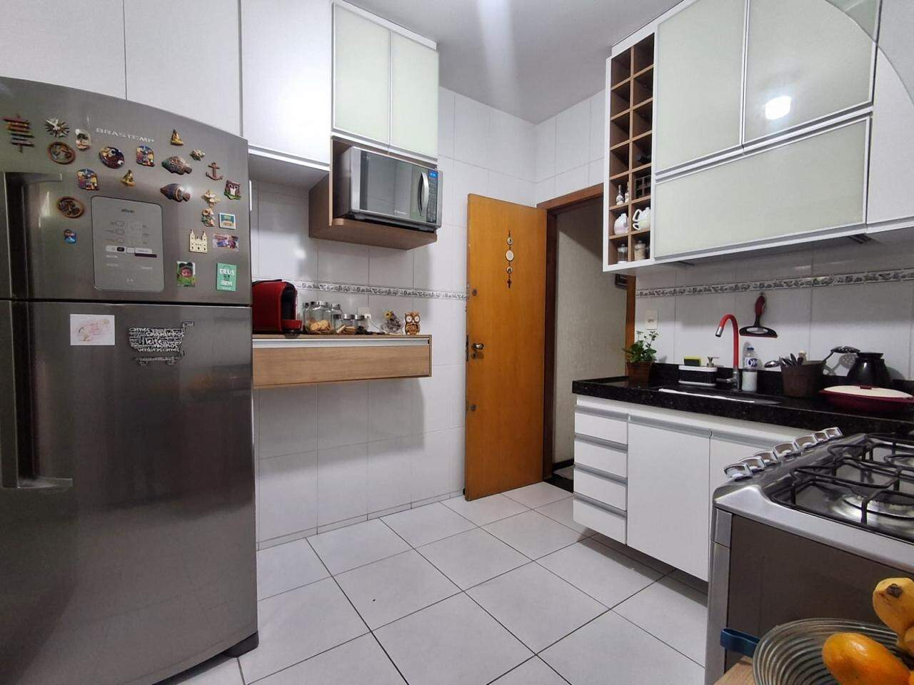 Cozinha espaçosa com armários planejado e área de serviço externa.