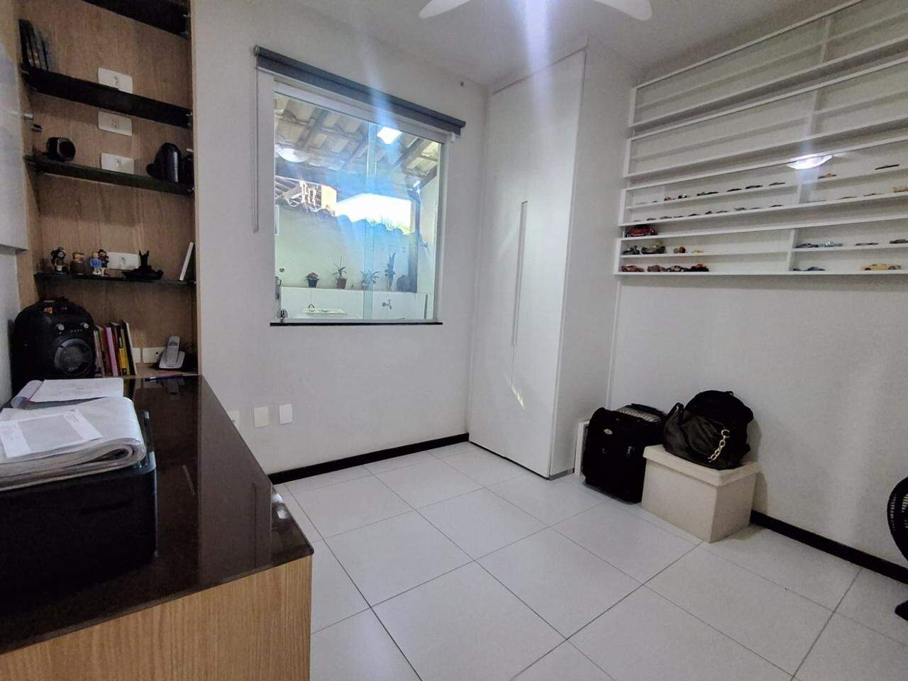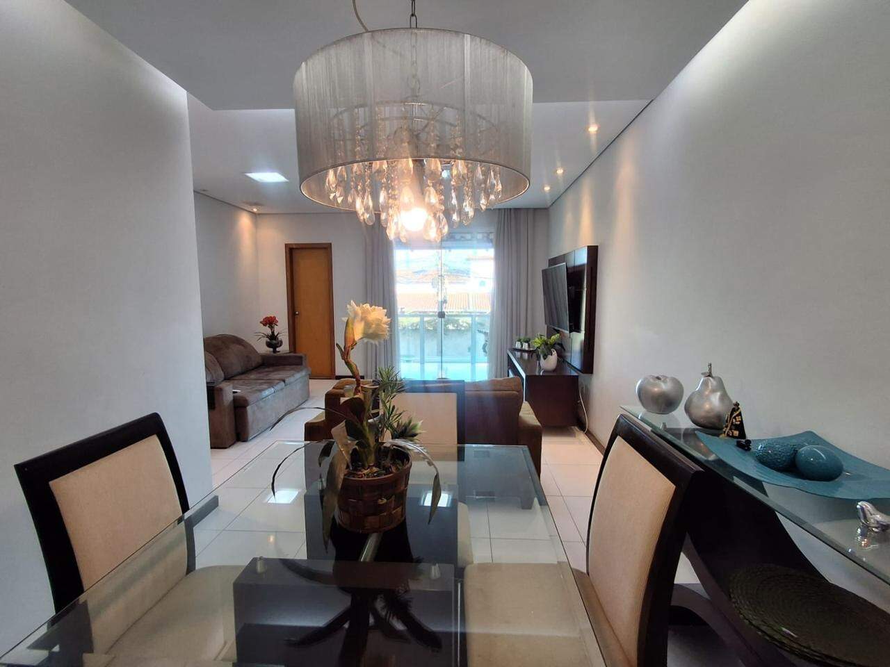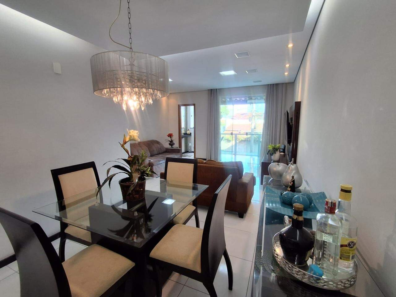 Garagem espaçosa para quatro carros com armários planejado. Subindo um lance de escada, sala ampla para três ambientes muito confortável e arejada, uma linda sacada. Composta também com um lavabo.