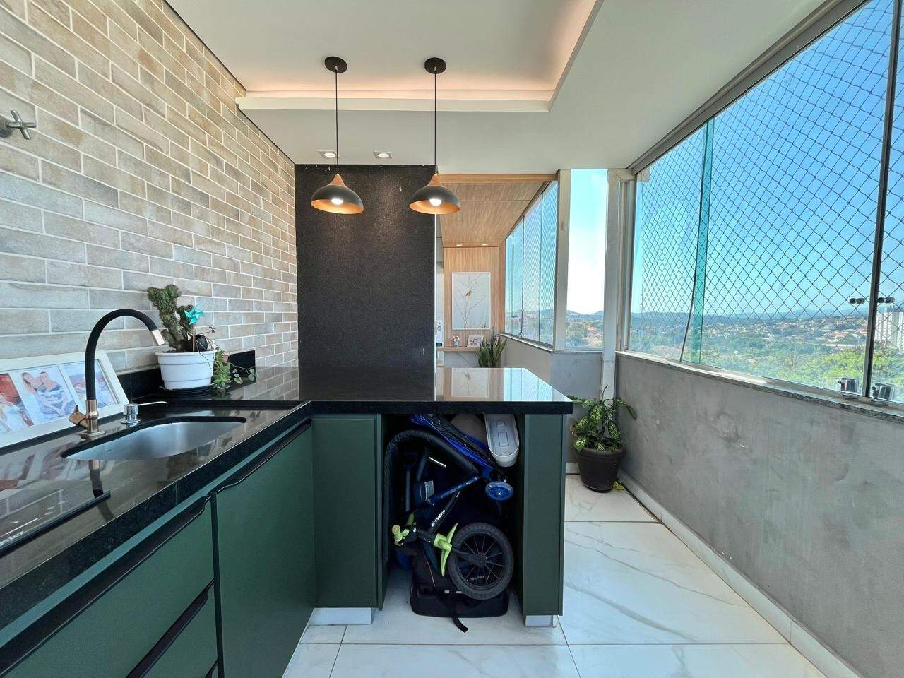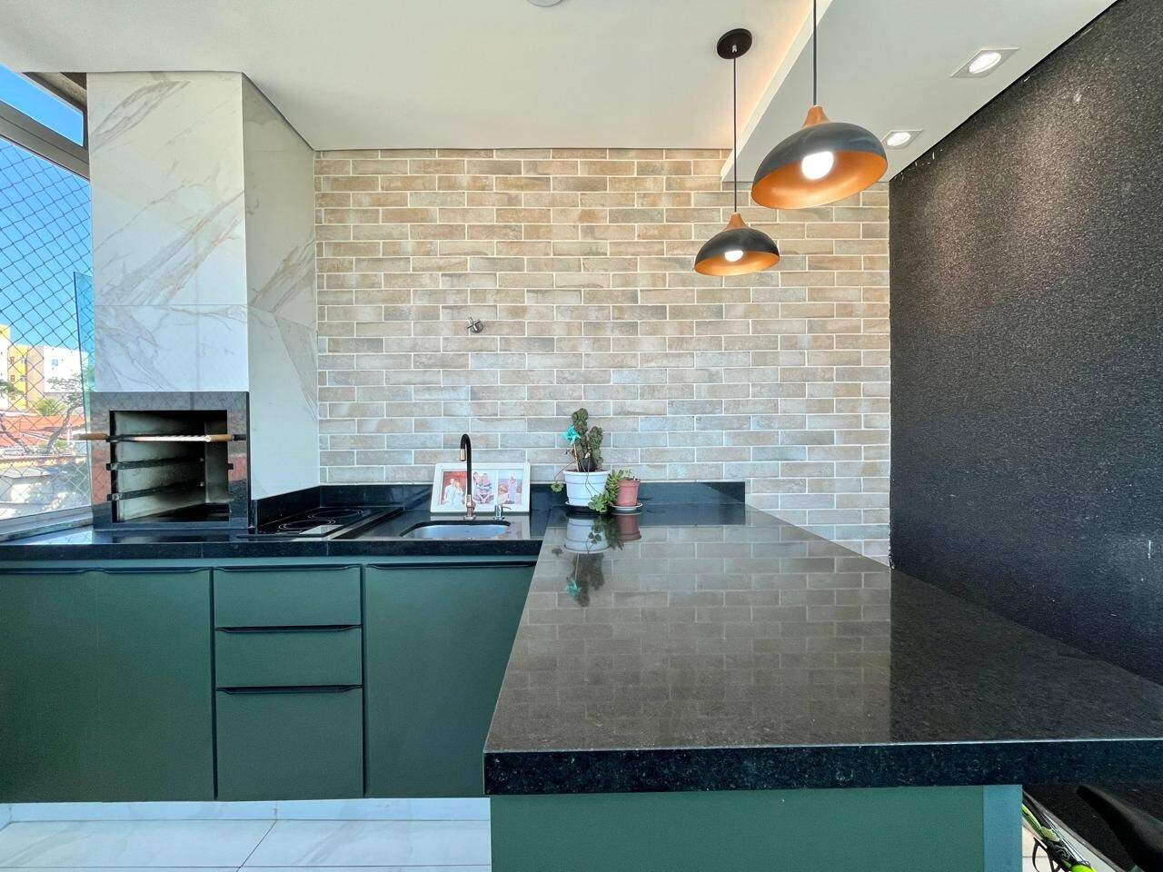 - Cozinha rica em armários, bancada em granito, rebaixamento de teto em gesso;