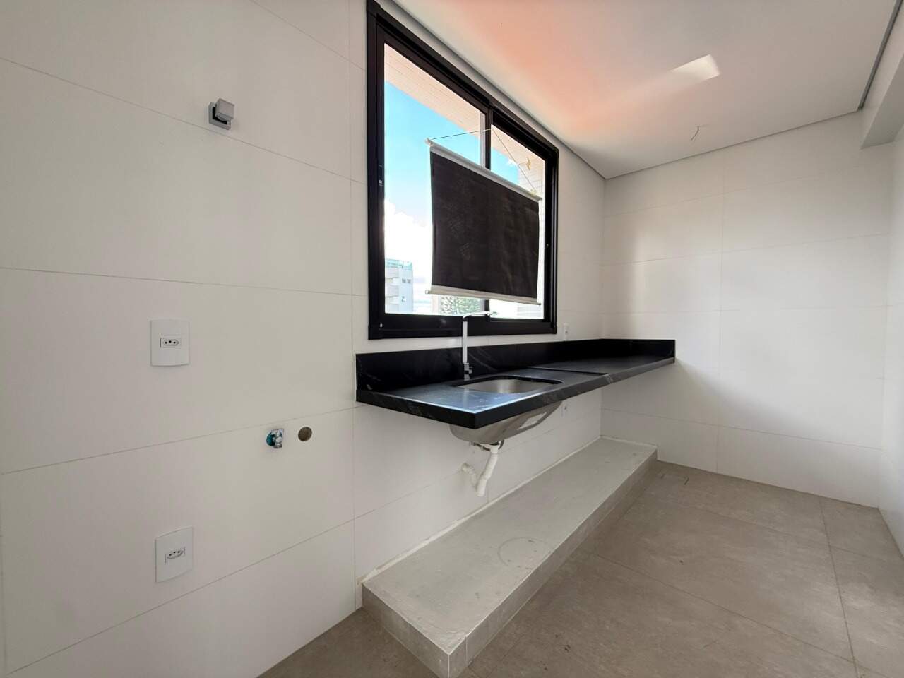 • Lavanderia independente, com bancada e pontos de tanque e máquina de lavar, funcional para ser usada como despensa também.